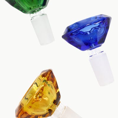 Add a touch of sparkle to your setup with this eye-catching crystal cut bowl piece. Made from durable colored glass, its faceted design not only looks stunning but also offers a comfortable grip and a premium feel. Compatible with any 14.5mm female joint, this bowl is the perfect way to upgrade your bong with a little color and class. Available in a variety of vibrant shades—because your setup should look as good as it hits.