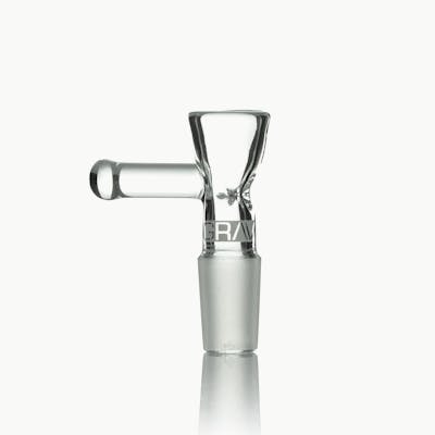 The 14mm GRAV® Triple Pinch Bowl is compatible with any 14mm female joint and features a glass arm on the side of the bowl for safe handling. Its restriction is formed by three glass pinches designed to catch ash and keep plant matter in place. The pinch bowl's limited capacity is designed for use with smaller water pipes and Helix™ pipes.