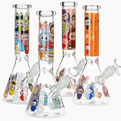 Meet your new favorite conversation piece: the Funny Animal Glass Beaker Water Pipe. Standing at 9.75 inches tall, this beaker-style piece is crafted from durable borosilicate glass and features playful cartoon monster decals that bring a fun, quirky vibe to every session. Glow-in-the-dark accents add an extra layer of personality, making it stand out day or night. Designed for both style and function, it includes a 3-pinch ice catcher for cooler hits, a removable slitted diffuser downstem for smooth filtration, and a 14mm male herb slide with a convenient handle. Each piece is uniquely styled, so designs may vary—adding a surprise element to your collection.
