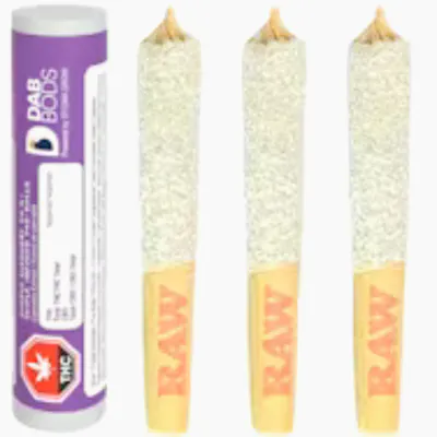 Discover the ultimate cannabis experience with Dab Bods Purple Elephant 50’s+ Triple Infused Pre-Rolls. These meticulously crafted half-gram pre-rolls feature a tantalizing cultivar that captivates your palate with a rich grape taste. Infused with premium resin, distillate, and botanical terpenes, then generously coated in diamonds for an extra kick. Each pre-roll delivers an exceptional potency of 50+, ensuring a powerful and flavourful session. Packaged in a convenient three-pack, experience the delightful fusion of flavour and strength with Dab Bods Purple Elephant.