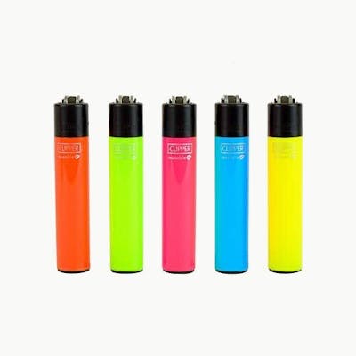 Solid Fluorescent Colour Clipper Lighter Clipper leads the way in the world lighter market and is a consumer favourite in refillable lighters because of its recognizable, iconic design and high quality specification. Clipper lighters work well with pipes and include features such as a fixed flame, nylon body and a child resistant mechanism.