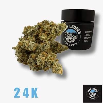 24K — a cross of Kosher Kush and Tangie — is a vibrant, terp-forward cultivar that delivers a balanced high with unmistakable orange zest. Under our living soil and natural cultivation practices, this strain develops a bold, clean flavor that’s both uplifting and grounding. The result is mood-lifting and clear-headed, making 24K a great daytime strain or a go-to for social sessions. The flower finishes with bright orange hairs and sticky trichomes — true bag appeal that matches its performance.