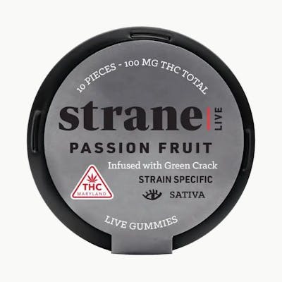 Our Strane Live gummies are made with terpenes that match our strain-specific formula. They're vegan and come in various flavors. Our Passion Fruit, infused with Sativa Green Crack Terps, offers a tropical delight.