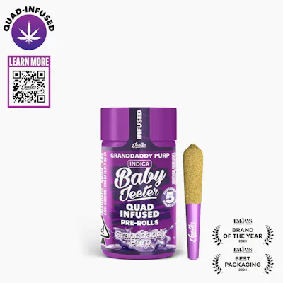 Granddaddy Purp | Baby Jeeter | Indica 5 x 0.5G Joints 2.5G Total Quad-Infused | Premium Flower Infused with THCa Diamonds, Rosin, & Kief **Buy any 3 Jeeter Preroll 5-packs for $85 + Taxes**