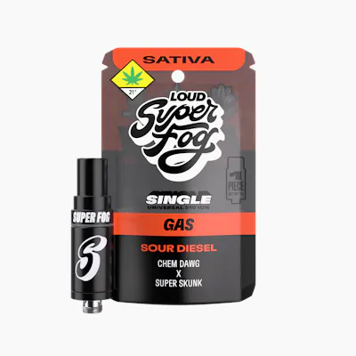 TYPE: Sativa GENETICS: Chem Dawg x Super Skunk CLASSIFICATION: Legacy Strain / Gas Profile Heavy gas and tangy lemon citrus lead the way in Sour Diesel, backed by that gritty earthy finish everyone recognizes. No polish, no filter, just a classic that still goes hard decades later. Powered by Mfused Hardware Technology: 1g cartridge with standard 510 threading (14mm diameter) Proprietary mouthpiece designed for optimized airflow and longer sessions Ceramic coil construction optimized for clean, consistent flavor and vapor production Compatible with all Super Fog devices Constructed from premium, cannabis-compliant materials including ceramic, glass, and stainless steel