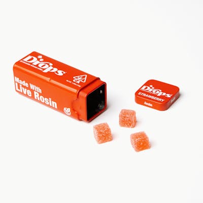 Made with Strain-Specific Live Rosin & CBD Distillate Effect: Lifted. Calm & Uplifting. Dosage: 25mg CBD, 100mg THC (1:4) Pieces: 20