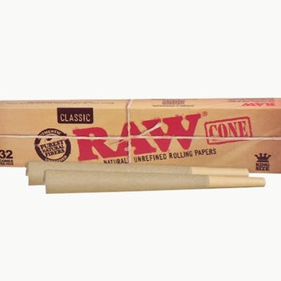 "RAW Classic king size cones offer unmatched convenience with precision-crafted, pre-rolled cones made from naturally unbleached RAW Classic Papers. Free of chalk, dyes, and burn additives, these cones are made from natural plants and feature a patented criss-cross watermark for an even burn. Each 110mm cone is finished with an acacia gumline for a perfect seal. With 32 cones per pack, they're ready to fill and enjoy with ease!"