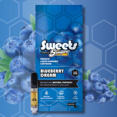 Containing Liquid Diamonds evenly infused with Natural Terpenes, this 1g cartridge enhances the sweet berry character of this legendary heritage cross. Blueberry Dream combines a smooth, flavorful smoke with creative, euphoric energy — for a balanced uplifting experience.