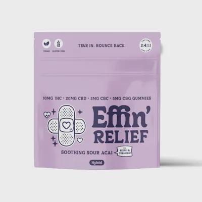 Effin' Relief | Soothing Sour Acai | THC:CBD:CBC:CBG Gummies | 20 Servings