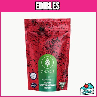 Introducing the Choice 200Mg Gummies 10 Pack in Super Sour Watermelon Kush flavor, a delightful cannabis-infused edible that promises a consistent dose, great flavor, and long-lasting effects. These soft, chewable gummies are crafted with precision, ensuring each bite delivers the perfect balance of taste and potency. Indulge in the tantalizing allure of Super Sour Watermelon Kush, where invigorating sour notes meet the refreshing sweetness of ripe watermelon. This exquisite flavor profile dances on your palate, offering a burst of citrusy tang followed by a smooth, fruity finish that lingers delightfully. Perfect for those seeking a balanced high, these gummies offer a gentle yet uplifting euphoria that melts away stress and invites creativity. Whether you're unwinding after a long day or seeking inspiration for artistic endeavors, these gummies are your ideal companion. Made with premium cannabis concentrate, they ensure a superior experience every time. As Michigan’s #1 Selling THC Gummies, Choice offers an award-winning taste that is now all-natural. Discover the magic of these gummies and savor the journey they take you on. Available at The Cake House in a location near you in Michigan, elevate your experience today with Choice 200Mg Gummies.