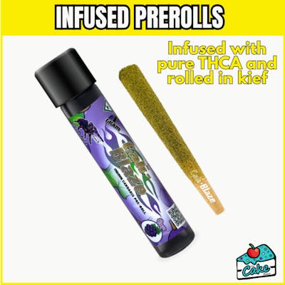 Introducing the Cali Blaze 1G Infused Tarantula Preroll - Grape, a cannabis connoisseur's dream available at The Cake House, Michigan's premier dispensary chain. This isn't just any pre-roll; it's an elevated experience crafted for those who crave potency and flavor. Imagine a high-quality cannabis flower, meticulously rolled and then enhanced with Cali Blaze's signature infusion process. With over 30 hand-picked infusions, Cali Blaze ensures that each puff delivers an unparalleled blend of taste and strength. The Grape strain at the heart of this pre-roll is a sensory delight, offering a rich, fruity profile that mirrors the taste of ripe grapes. Its vibrant purple hues and dense, resinous buds are a feast for the eyes, while its balanced indica and sativa genetics provide a harmonious mix of relaxation and euphoria. Dominated by myrcene and pinene terpenes, this strain not only pleases the palate with its sweet, grape-like aroma but also offers potential therapeutic benefits like stress relief and mood enhancement. Perfect for both recreational and medicinal users, the Cali Blaze 1G Infused Tarantula Preroll - Grape is your ticket to a well-rounded cannabis experience. Whether you're seeking relaxation after a long day or a mood boost to elevate your spirits, this pre-roll delivers. And the best part? It's available at The Cake House, conveniently located near you in Michigan. Don't miss out on this exquisite blend of flavor and potency—visit The Cake House today and indulge in the ultimate cannabis experience.