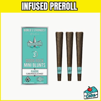Experience the pinnacle of cannabis indulgence with the Presidential Mini Blunts Multipack 3 Pack - OG, available exclusively at The Cake House, Michigan's premier chain of dispensaries. These infused blunts redefine luxury with their expertly crafted blend of premium ground flower and potent concentrates, delivering an unparalleled smoking experience. Each pack contains 2.1 grams of pure bliss, wrapped in a 100% tobacco-free blunt wrap, ensuring a smooth and satisfying draw every time. Discover the legendary allure of OG, a strain that has captivated cannabis enthusiasts with its potent effects and rich heritage. Known for its earthy pine aroma with subtle hints of citrus, OG offers a sensory experience that is both invigorating and soothing. This iconic strain delivers a balanced high, combining a euphoric cerebral buzz with deep physical relaxation, making it perfect for unwinding after a long day or sparking creativity. Whether you're seeking relief from stress or simply looking to elevate your mood, OG promises a journey of tranquility and inspiration. Embrace the classic essence of OG and let its timeless charm enhance your cannabis experience. Presidential is renowned for crafting the world’s strongest cannabis products, setting the gold standard in innovation, excellence, and customer service. As pioneers in the infused product market, they introduced their Infused Moonrock Prerolls in 2012 and continue to lead with their revolutionary Infused Moonrock Blunts. With a commitment to quality and potency, Presidential ensures that every product delivers an extraordinary experience. Indulge in the ultimate cannabis luxury with the Presidential Mini Blunts Multipack 3 Pack - OG, and elevate your senses with the iconic OG strain. Visit The Cake House at a location near you in Michigan and discover why these blunts are a must-have for any cannabis connoisseur.
