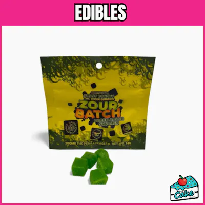 Introducing Zour Batch - Frost Donkey Green Apple Rosin Squares 5Pk - 200 Mg, a delightful gummy offering from The Cake House. Each pack contains 200 milligrams of carefully crafted goodness. These gummies are infused with the essence of Green Apple, known for its sweet and tangy apple-like aroma, complemented by subtle hints of earthiness. The flavor profile is a harmonious blend that captures the essence of fresh, crisp apples, making it a treat for the senses. All products at The Cake House are lab tested in accordance with Michigan regulations and available for pickup at licensed dispensary locations across the state.