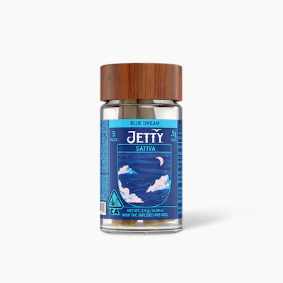 CBD: 0.1% | CBDa: 0.06% | THC: 43.73% | THC9: 25.93% | THCA: 20.29% -- Blue Dream x Leap Year feels like time well spent—classic haze-bright focus from Blue Dream, paired with Leap Year’s sweet, gassy calm. Infused with Jetty High THC. Classic strains you know and love. High potency oil paired with premium small buds. Cryoinfused to preserve more terpenes, cannabinoids, and other natural plant compounds, giving you amazing flavor and a smooth smoke from start to finish. Top-shelf bud. Curated flower and oil pairings. Supercharged Potency. Find your flavor with Jetty Pre-Rolls.