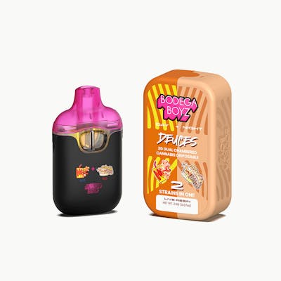 CBD: 0.12% | THC: 87.52% | THC9: 87.52% -- Embrace the versatility of day and night with our Orange Burst and Vanilla Crème Brûlée combo, carefully crafted for round-the-clock enjoyment in our dynamic Deuces dual-chamber tank. During the day, Orange Burst awakens your senses with its vibrant fruity punch flavor, offering a refreshing burst of energy to fuel your adventures. As the night falls, indulge in the luxurious sophistication of Vanilla Crème Brûlée, with its creamy vanilla custard and caramelized sugar notes, perfect for unwinding and indulging in sweet dreams. Whether you're basking in the sunlight or seeking solace under the moonlight, this dynamic duo ensures that every moment is accompanied by a burst of flavor. Tap once to switch seamlessly between flavors, or double-tap for a unique fusion that dances on your palate. Experience the flexibility to enjoy each flavor individually or mix them for an unparalleled taste adventure. Elevate your vaping journey with this dynamic trio - because why settle for two flavors when you can savor three?