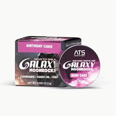CBG: 42.19mg/g | CBN: 34.19mg/g | THC9: 48.98% | THCA: 0.8% -- When you ignite the Galaxy Birthday Cake Moonrock 1G, get ready to embark on a journey of pure bliss and euphoria. The combination of the indulgent birthday cake flavors and the high THC concentration will take you to new heights, leaving you feeling uplifted and content.