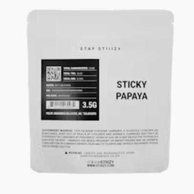 CBC: 0.96mg/g | CBDa: 0.06% | CBG: 0.97mg/g | THC8: 0.2mg/g | THC9: 0.85% | THCA: 33.97% | THCV: 0.2mg/g -- Unwind and escape with Sticky Papaya. A powerful indica dominant hybrid with fruity presence and piney aftertaste. This strain offers users sedative effects, rolling body buzz, and clarity.