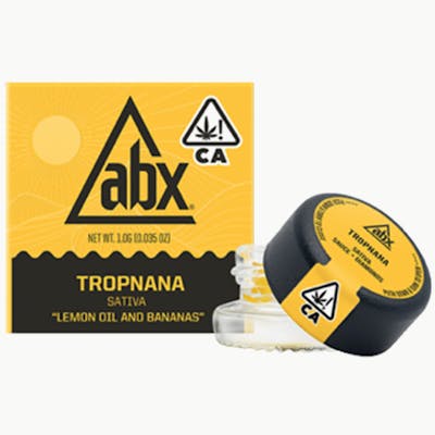 AlphaPinene: 0.56mg/g | BetaCaryophyllene: 12.03mg/g | BetaMyrcene: 6.95mg/g | BetaPinene: 1.23mg/g | Bisabolol: 1.64mg/g | Camphene: 0.02% | CaryophylleneOxide: 0.32mg/g | CBDa: 0.12% | CBG: 2.51mg/g | CBGA: 27.5mg/g | Guaiol: 0.04% | Humulene: 4.65mg/g | Limonene: 10.76mg/g | Linalool: 2.95mg/g | Ocimene: 0.1mg/g | Terpinolene: 0.26mg/g | THC9: 1.37% | THCA: 88.33% -- Top shelf, first-in-class flavor, aroma, and effects. Each batch is hand-selected at peak freshness by our OG farmers. Only the best flower from our fields is selected to make these best-in-class concentrates. Tropnana | Sativa | [Yuzu x Bananas] | “Lemon oil and Bananas”