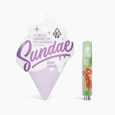 Sundae Cartridge – Grape Sorbet (1G) is a premium cannabis vape designed for smooth performance, bold flavor, and convenient enjoyment. With its rich terpene profile and dessert-inspired taste, this 1-gram cartridge offers a flavorful experience that appeals to both new and seasoned cannabis consumers. Grape Sorbet delivers a vibrant flavor profile that blends juicy grape sweetness with subtle citrus and creamy sorbet-like undertones. The aroma is fruity and refreshing, while each inhale produces a smooth burst of grape flavor followed by a light, sweet finish on the exhale. This well-balanced taste makes it a great option for those who enjoy fruity, candy-like vape profiles. The effects of Grape Sorbet are often described as balanced and enjoyable. Many users report an uplifting cerebral buzz that can promote a positive mood and gentle mental clarity. As the experience develops, a light body relaxation may follow, helping you unwind without feeling overly heavy or sedated. This makes the cartridge suitable for a variety of moments, from social gatherings to relaxed evenings. The 1G cartridge provides long-lasting sessions and is designed to work with most 510-thread vape batteries, offering easy compatibility and convenient use. Sundae cartridges are crafted to preserve terpene flavor while delivering smooth, consistent vapor throughout the life of the cartridge.