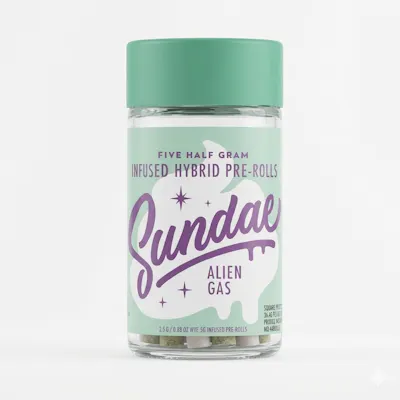 Elevate your sessions with bold flavor and powerful effects in the Sundae Infused Preroll 5-Pack in Alien Gas. Designed for those who prefer a stronger, more robust experience, this pack includes five expertly rolled prerolls, each infused with premium concentrates for enhanced potency, smooth draws, and a slow, even burn from start to finish. Alien Gas is known for its intense, gassy aroma and deep, earthy flavor profile. Each puff delivers rich diesel notes layered with hints of spice and pungent undertones, creating a full-bodied and satisfying smoke. The infusion takes it a step further, amplifying both flavor and effects for a longer-lasting and more impactful session—perfect for experienced users. Crafted with high-quality flower and precision-packed for consistency, these infused prerolls ensure reliable performance in every roll. The ready-to-use format eliminates any prep work, making them ideal for on-the-go convenience or easy enjoyment at home. With the Sundae Infused Preroll 5-Pack in Alien Gas, you get a powerful combination of bold taste, elevated potency, and everyday convenience—making it a go-to choice for those seeking a heavy-hitting, flavorful experience.
