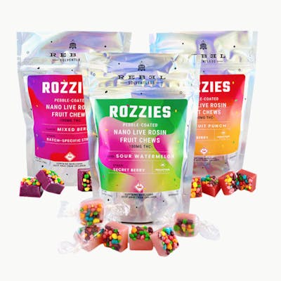 We set out to revolutionize fruit chews so they were delicious, effective, and not full of crappy crap. Rozzies are one sexy batch, what with their live rosin, natural ingredients and those crunchy tasty bits. No one else even comes close to their stardom.