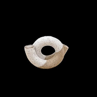 Enjoy a unique smoking experience with this robust, minimalist curled pipe, perfect for both tobacco and herbal blends. Designed for relaxation and enjoyment, it features a striking white glaze over brown speckled stoneware. The pipe measures roughly 4 inches in width and 3 inches in height. As each piece is handcrafted, expect minor variations, making your pipe truly one-of-a-kind.
