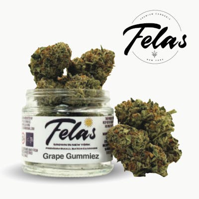 Grape Gummiez Hybrid - THC 31.79% TERPS 2.41% (Gummiez x Grape Gas) Grape Gummiez strain is a modern, candy-forward hybrid prized for its grape-candy aroma and dense, frosted flowers. We’re two brothers from White Plains, NY with over 20 years in the legacy market and over 13 years growing cannabis. Our grandmother “Fela” was the first to let us grow cannabis at her house and as a thank you to her we always said if it ever got legalized we would name our cannabis brand after her.