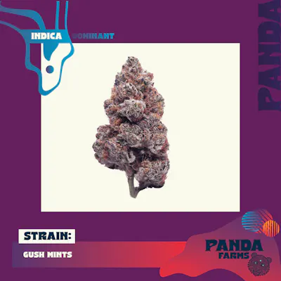 Total Terpenes: 1.57% Bred from the dessert-heavy (Kush Mints × F1 Durb × Gushers) line, Gush Mints lands squarely in the modern “sweet gas” lane but with real depth behind it. The nose opens on creamy mint and vanilla frosting, then turns into berry candy and earthy fuel once broken up. Dominant terpenes typically center around limonene, caryophyllene, and linalool, giving it that cool-sweet inhale followed by a warm, slightly spicy finish. Effects come on smooth and steady — initial mood lift and mental unclenching, then a gradual body melt that stays functional rather than sedating. It’s the kind of indica-leaner that quiets background noise without shutting down the day: relaxed, even, and clearheaded enough to keep moving if you want to, comfortable enough to stop if you don’t.