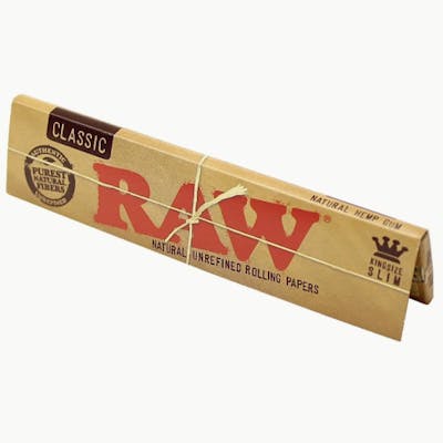 RAW Classic Rolling Papers are the original natural rolling paper RAW Natural Rolling Papers are a pure, less processed rolling paper so thin that you can see through it. With a hybrid blend of unbleached (not chemically whitened) fibers, the paper is a translucent natural light color. Each RAW Classic Rolling Paper is watermarked with a special Crisscross imprint that helps prevent runs and maintains the smooth even-burning characteristics.