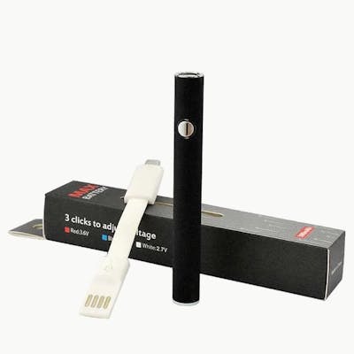 380mAh Preheat Variable Voltage Battery & USB Charger. Standard 510 threading will fit nearly any cartridge on the market. This slim pen style battery sports a classic manual operation with convenient one button controls for fast and discreet sessions anywhere on the go. Includes three power options to help you hit that perfect sweet spot with a wide range of different concentrated oil types (2.7V, 3.1V, 3.6V)