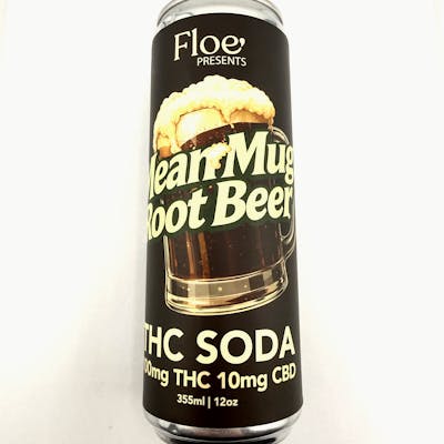 New! Floe Beverages 100mg THC 10mg CBD fast acting root beer soda drink with a resealable lid.