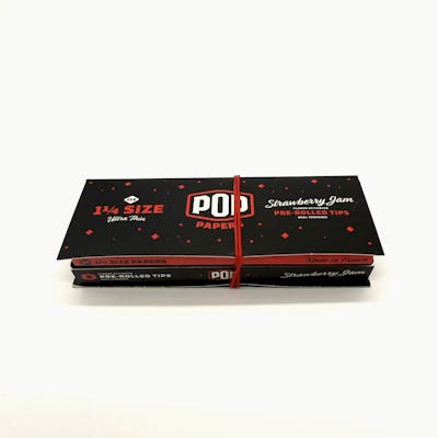 24 1 1/4 ultra thin papers with 8 pre rolled tips with Strawberry Jam terpene poppers, just pop and enjoy.