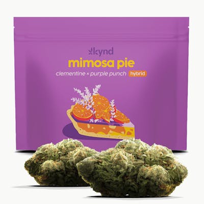 Mimosa Pie is your slice of sunshine. A Clementine x Purple Punch hybrid, this strain opens with zesty citrus and sweet, fruity notes that feel like the first pop of a fresh-squeezed mimosa. As it settles, the aroma rounds out into tropical-berry warmth—bright, juicy, and impossible not to smile at. The high is just as uplifting: a happy, effervescent euphoria that lifts your mood and keeps you floating in that sweet spot between relaxed and inspired. Think: brunch energy without the buzz, a little celebration in every puff.
