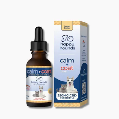 Calm + Coat Salmon Oil CBD Drops 250mg per bottle, 8.3mg per dropper Daily calm. Skin support. Whole-body balance. Dry weather, indoor heat, and seasonal stress can leave pets feeling anxious, itchy, and uncomfortable. These calming drops are rich in omega-3 fatty acids from Salmon Oil, plus Turmeric and Full-spectrum CBD, to help soothe stress, support the nervous system, and hydrate skin from the inside out. Omega-3s help reduce inflammation, support skin barrier health, and promote a softer, shinier coat — while hemp supports emotional balance and everyday calm. Supports: • Anxiety & stress • Dry, itchy skin • Seasonal coat issues • Daily wellness & recovery Clean • Vet-approved • Easy to dose