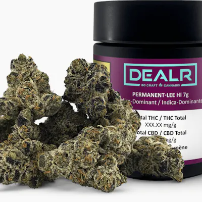 Permanent-Lee Hi, a cross of Permanent Marker and Supreme Lee Hi, presents dense emerald buds edged with lavender hues and golden frost. This indica-dominant cultivar carries an aroma of gas, sweet berry, and lemon-pine spice. Meticulously finished, this cut delivers a smooth, refined profile with an aromatic presence and a level of polish that highlights its standout genetics.
