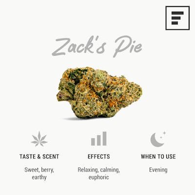 Zack's Pie offers a sweet, berry flavor with relaxing effects, perfect for unwinding in the evening.