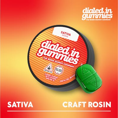 Full-spectrum rosin Sativa gummies. Each pack holds 10 gummies and rotates through flavorful, award-winning profiles with Dialed In's signature strain-specific taste and texture. Always solventless, always small-batch—Dialed In for a refined edible experience. About Dialed In: All batches of Dialed In Gummies are crafted using a specialized sous vide process — a precision method that allows for lower-temperature infusion, preserving the full terpene and cannabinoid profile of the cannabis rosin. This careful approach helps lock in maximum flavor, potency, and consistency across every batch. The result is a soft, rich-textured gummy that offers a more vibrant and true-to-strain experience compared to traditional edibles. Dialed In’s dedication to small-batch production and their attention to detail ensure that every gummy delivers clean, potent effects with a focus on taste and quality you can trust.