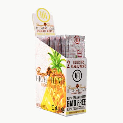 High Hemp Pineapple Paradise Organic Wraps are the first of its kind! With a smooth tropical aroma, as you open the pouch, you'll quickly fall in love. Using only natural pineapple flavor, you'll instantly smell the difference. Roll up the tropics this summer with High Hemp Pineapple Paradise. 2 Wraps & 2 Tips Per Pouch