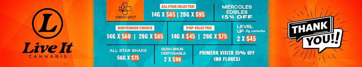 ¡Exclusivo en GREEN SPOT! - Live It! Descubre la exclusiva linea de cannabis medicinal premium y con calidad garantizada. Visítanos en CAROLINA .