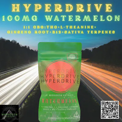 Mid South Extracts Gummies | Hyper Drive | Watermelon | 1:1 THC:CBG 100mg [10 pcs]