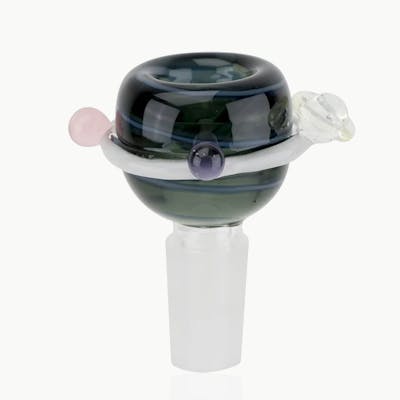 Retail Unit: One (1) Bowl Size: 4" X 2.5" Joint Size: 14mm Material: Borosilicate / Pyrex Glass Single Hole or Funnel Style Bowl Individually Hand Crafted Art Piece UV Reactive