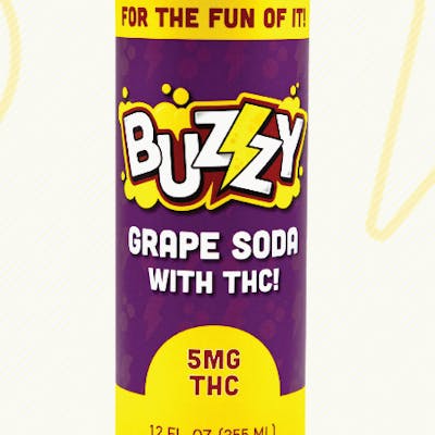 Grape soda is a blast from the past and Buzzy's are made with real cane sugar and fast-acting THC so you can sip sweet memories and make the best of today at the same time! Sweetened with cane sugar. Crack open a can of Buzzy Soda and experience your favorite soda flavors with an unexpected twist—each can is infused with 5mg of THC for a smooth, consistent buzz that lifts your mood without missing a beat. Refreshing, delicious, and perfectly balanced, Buzzy Sodas turn everyday moments into something a little more electric. Ideal for winding down or turning up the vibe with friends, this is cannabis enjoyment made simple—and seriously tasty. Best served and enjoyed chilled.