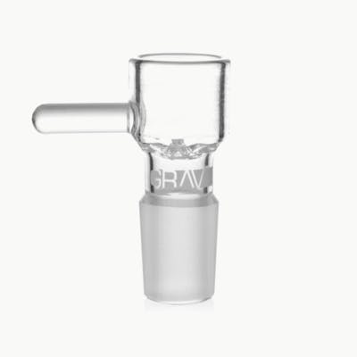 The 19mm GRAV® Male Octobowl is compatible with any 19mm female joint. Its glass screen is designed to catch ash and tar and hold plant matter in place, and an arm on the side of the bowl allows for safe handling. The Octobowl's substantial capacity is designed for use with larger water pipes and upright bubblers.