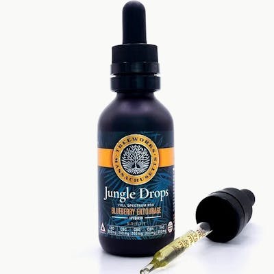 1:1:1:1:1 3.5mg THC, 3.5MG CBD, 3.5mgCBG, 3.5mg CBC, 3.5mg CBN per serving (1mL) | 60 Servings per bottle | Organic | Sugar Free | Gluten Free | Vegan Enjoy the complete Entourage Experience! Packed with medicinal benefits, Jungle Drops provide well-balanced and highly enjoyable effects. Combining the 5 most well-paired cannabinoids: THC, CBD, CBG, CBN, and CBC into one tincture, Jungle Drops create an uplifting yet soothing mind and body experience unlike the rest. A new company favorite. CBD - is the most popular non-psychoactive cannabinoid found in the cannabis plant. It may help with pain and anxiety, as well as a natural mood-booster. CBD may also help relax the muscles, which make it the ideal cannabinoid to use topically for soreness, an itch, or burn! CBG - is another cannabinoid that recent studies suggest may have similar pain-relieving properties to that of the super popular CBD. Other potential benefits include increased focus, attention, reduced inflammation and more! CBC is an anti-inflammatory, lending itself well to some topical agents. CBC is also quite abundant within the cannabis plant, which may be why many cannabis consumers claim they receive pain-relieving effects when generally consuming cannabis. CBN - is a mildly psychoactive cannabinoid that binds to the cannabinoid receptors with more selectivity for CB2 over CB1 found in trace amounts from cannabis. CBN is mostly found in cannabis plants that is aged and stored, and is derived from the plant's main psychoactive chemical, THC.