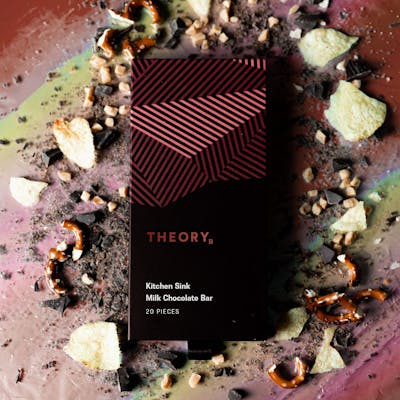 Theory’s Kitchen Sink Chocolate Bar is the ultimate indulgence, packed with a mouthwatering combination of crunchy pretzels, savory potato chips, and golden caramel flakes. This uniquely crafted bar is a delightful symphony of textures, offering a perfect balance of sweet, salty, and savory in every bite. Infused with premium full-spectrum cannabis oil, it delivers a smooth, well-rounded experience that’s both delicious and effective. Whether you're craving a satisfying crunch or a decadent chocolate moment, this expertly crafted treat is overflowing with flavor and relaxation, making it the ultimate go-to for those seeking a rich, infused experience like no other.