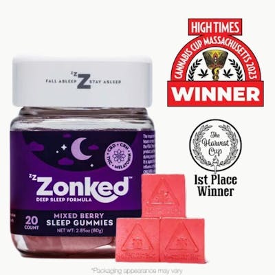 1:1:1 | 5mg THC, 5mg CBD, 5mg CBN, 2mg Melatonin per serving | 20 Servings per package Zzzonked can help you fall asleep faster, deeper and regulate your sleep cycle for a more replenishing rest. Eat one piece an hour before going to bed, and relax. Onset effects may take up to one hour to begin; effects may include calmness, drowsiness, and sedation. Zzzonked Sleepy Edibles are made with a natural blend of melatonin and full-spectrum cannabinoids: CBN, CBD, and THC, it’s the perfect recipe for a good night’s sleep. CBN: (aka Cannabinol) is shown in preliminary studies to have tranquil properties, particularly when paired with THC. CBD: CBD, or cannabidiol, is a natural compound found in the cannabis plant. It is known for its potential therapeutic benefits, including reducing anxiety, relieving pain, and promoting relaxation. CBD is non-intoxicating and does not produce a "high" like THC.