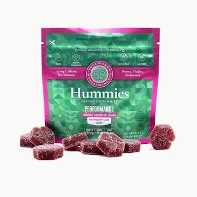 5mg THC per serving | 20 Serving per package | Organic | Gluten Free | non GMO | Vegan Go above and Beyond with the energy-boosting effects of the all-new Performance Hummy. Utilizing the most uplifting and energetic cannabinoids THC-V and CBG, this performance-enhancer will easily take you to the next level. Boasting caffeine, Yerba Mate, and Electrolytes, the Performance Hummy allows you to tackle your next challenge with confidence. Raspberry Lime Flavor Caffeine and Electrolytes Solventless Hash Rosin Real Fruit Vegan Non-GMO Gluten Free Organic Ingredients Full Spectrum/Full Cannabinoid
