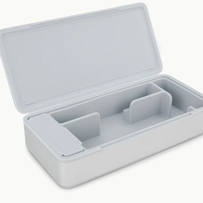 The Travel Case keeps your stash organized. Featuring a ridged hard aluminum exterior with a magnetic lid closure and soft silicone inside to reduce rattling, the Travel Case has room for a Pivot + Hot Knife, up to 3 jars, cotton swabs, a covered section for trash, and anything else you might need. Specs: Dimensions: 7.6" x 3.5" x 1.7" Material: Aluminum Exterior Four (4) Interior Compartments Noise Reducing Silicone Interior Space for up to 24 Swabs Covered Compartment for Dirty Swabs Magnetic Closure