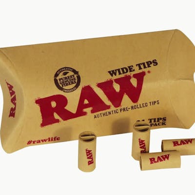 RAW Wide pre-rolled tips are designed to allow for a bigger roll and a bigger smoke. We carefully cut and pre-roll each tip to ensure a perfectly round smooth tip. Made with the same Classic RAW paper as all of their other filter tips, but for those looking for a longer sesh.