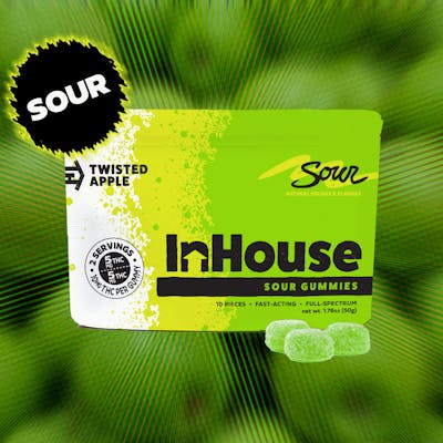 5mg THC per serving | packaged as 10mg, split in half for 5mg serving size Warning: may cause spontaneous sour face! This tart little troublemaker is bursting with bold green apple flavor and a zippy coating that’ll wake up your taste buds in the best way. Sweet, sour, and seriously snackable—it's apple with attitude. InHouse Gummies are full-spectrum, fast-acting sweet treats available in delicious flavors and unique ratios of THC and a variety of cannabinoids for whatever experience you choose. With an onset of 15 minutes, our sugar-coated gummies are vegan & gluten-free, naturally flavored and colored with real fruit juice and made without preservatives or high-fructose corn syrup.